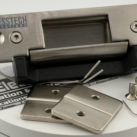 Easily upgrade from existing ANSI standard door frames. Simply remove the old strike plate, cut the door frame according to the installation instructions, and secure the strike using the included screws.